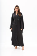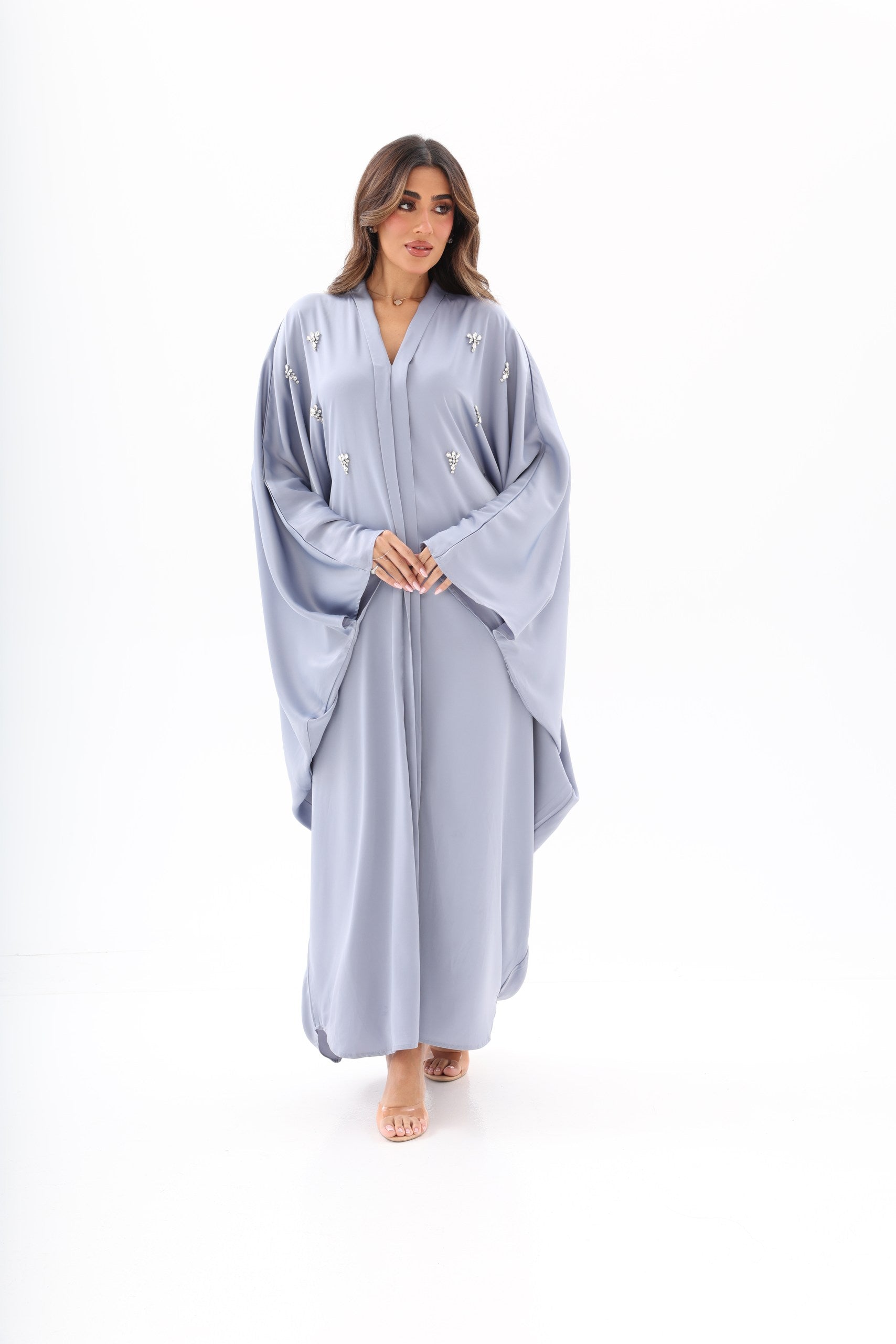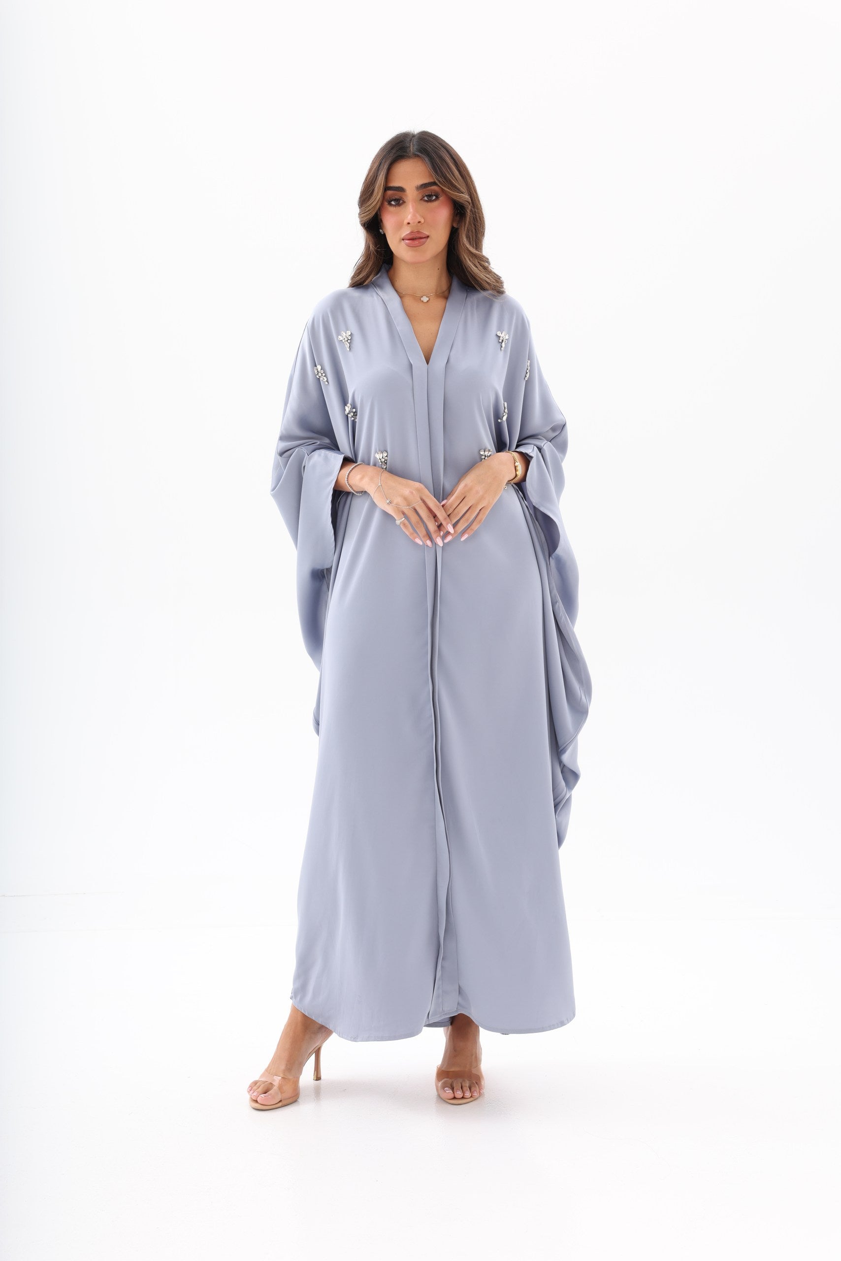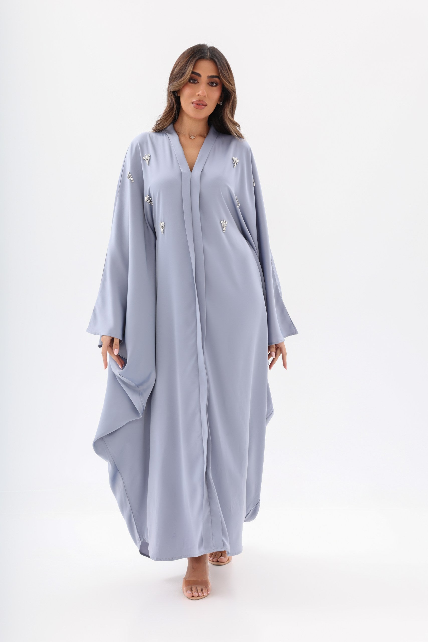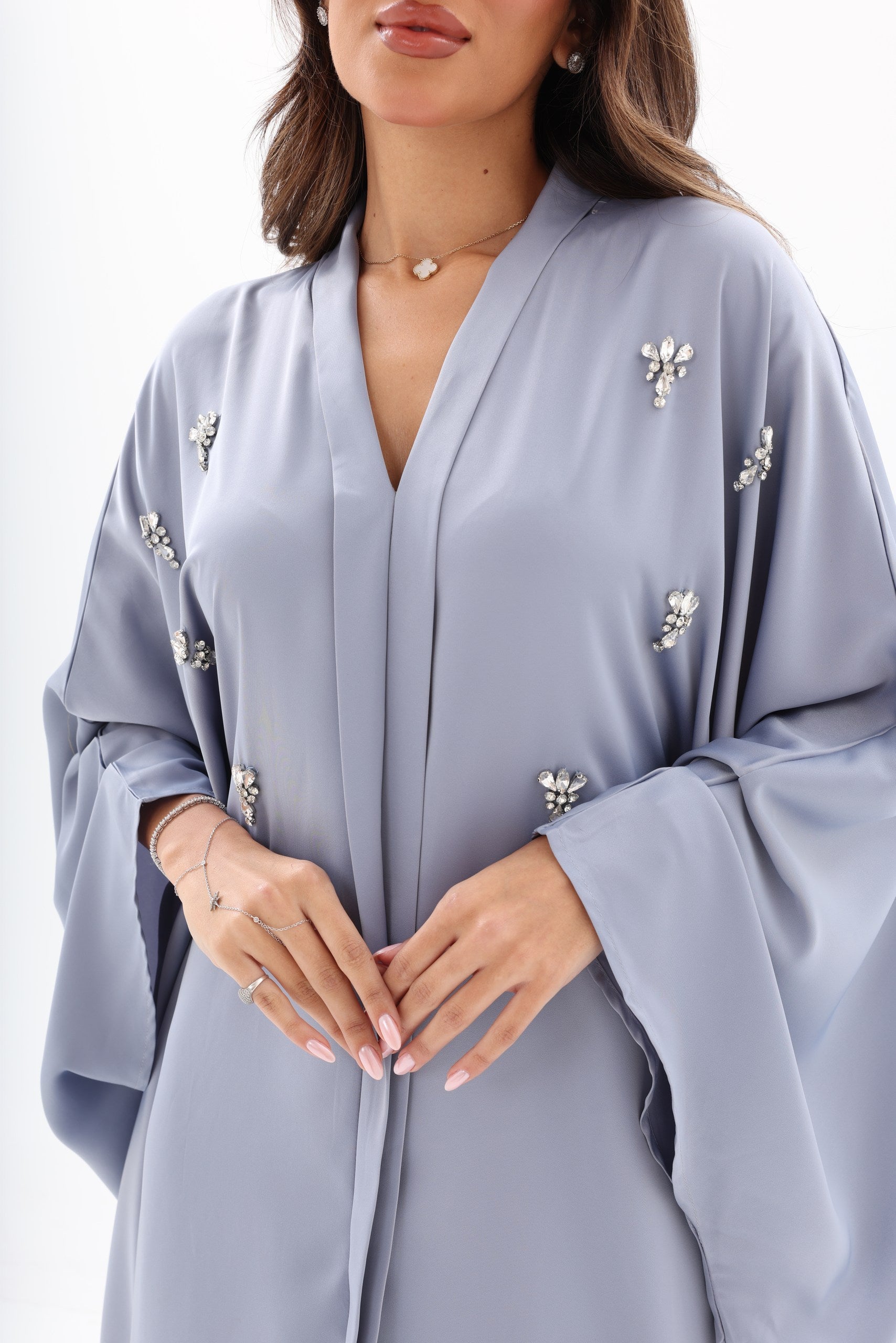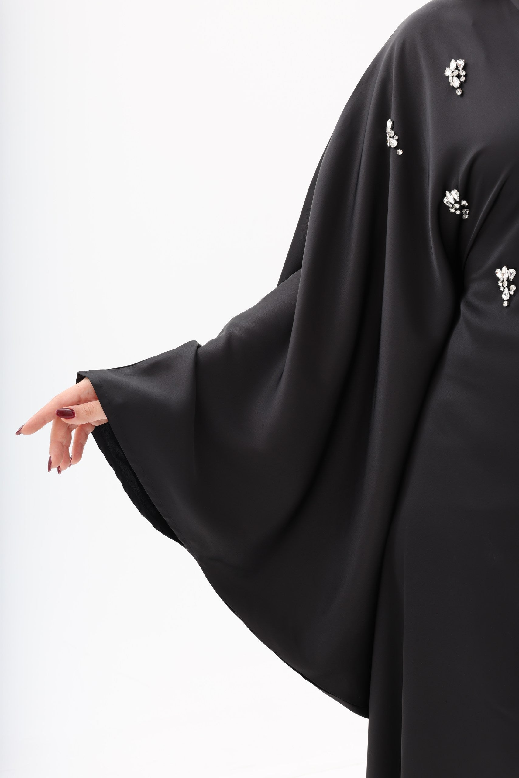 The Elara Crystal Abaya is designed for timeless elegance with a modern, feminine silhouette.