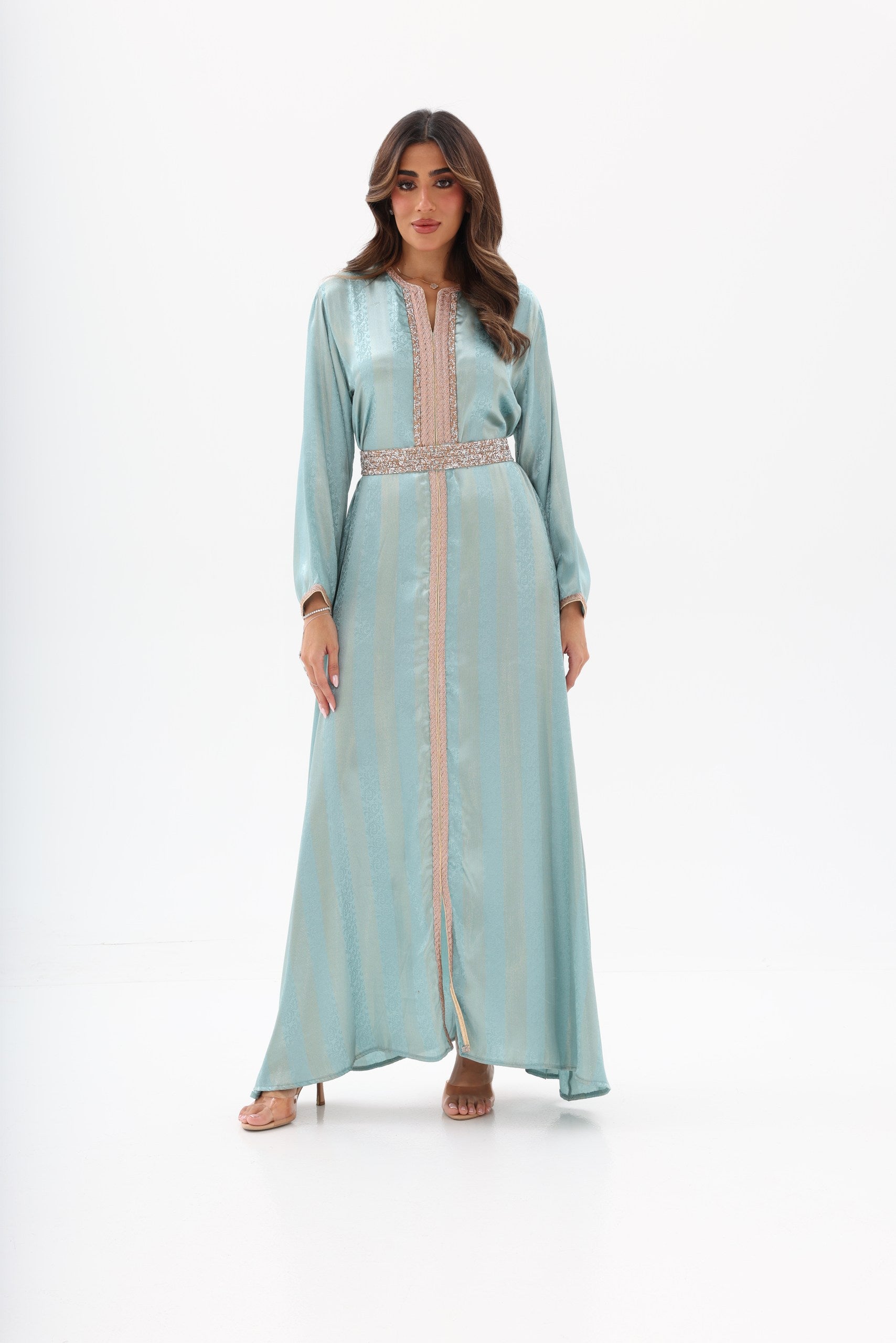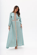 Lina Abaya from the Soft Aura Collection is designed for effortless elegance and everyday refinement. Crafted in a soft aqua hue with delicate contrast detailing, this abaya flows beautifully with a lightweight feel and relaxed silhouette. A perfect balance between comfort and understated luxury, ideal for daytime wear, gatherings, and elegant casual moments.