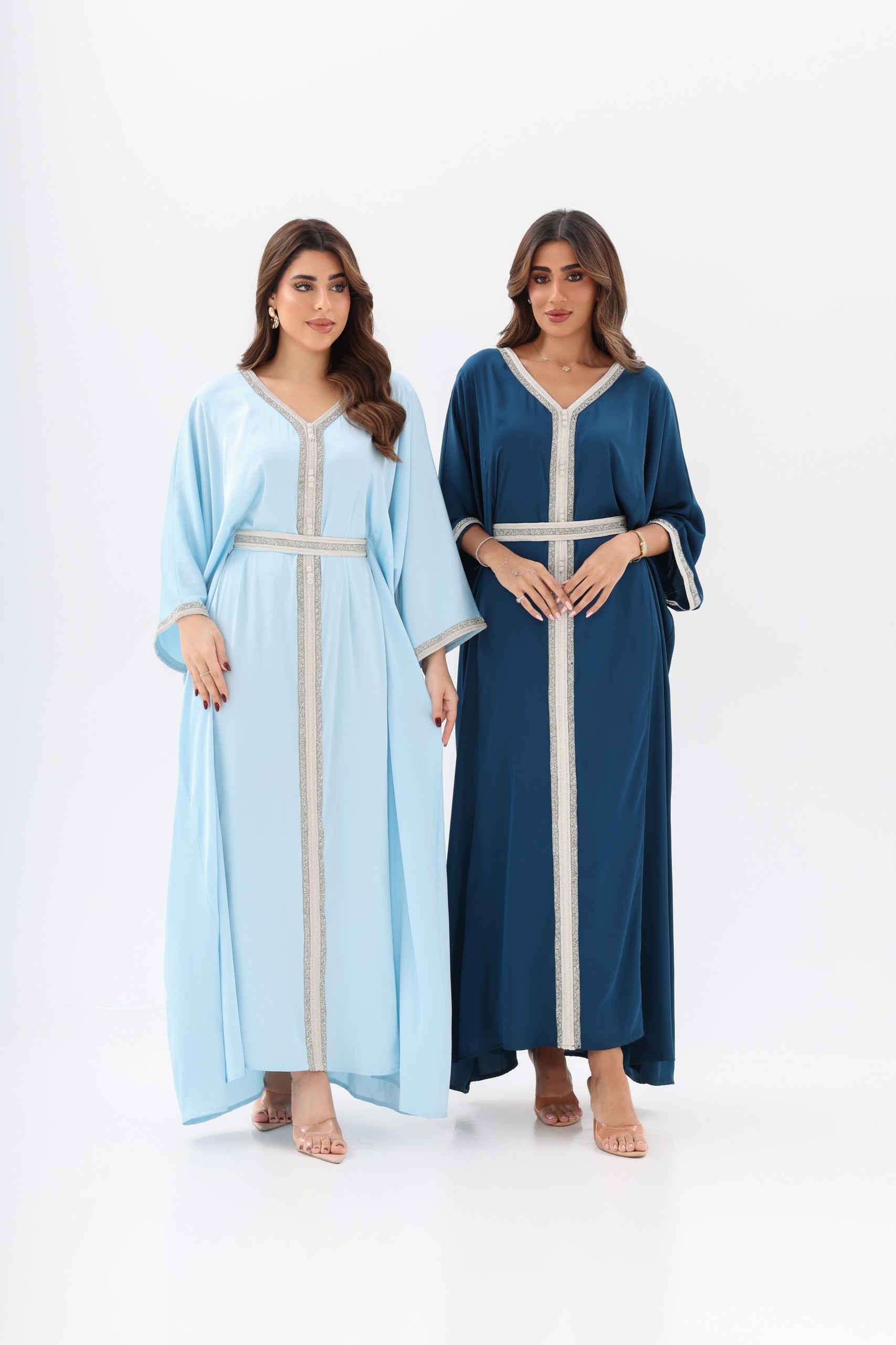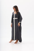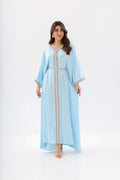 MAHRA Open Front Abaya with belt. Soft Aura luxury modest collection UAE.